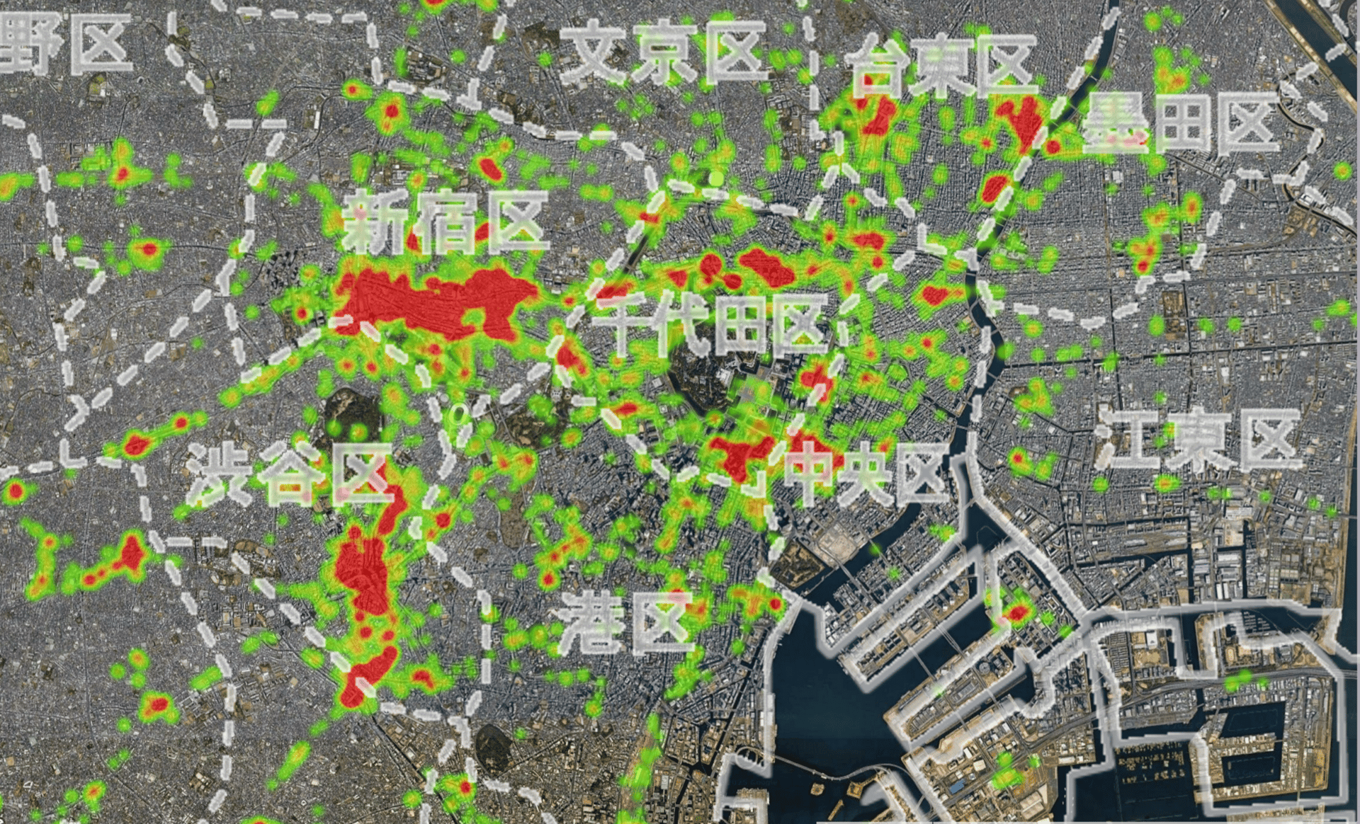 And finally in this section - I decided at the beginning of fieldwork to turn on my google maps location history, and now it’s finished I was able to make a heatmap of all the places I went! Pretty cool if I may say so myself, and you can definitely tell I lived in Shinjuku (where the biggest red blob is):
