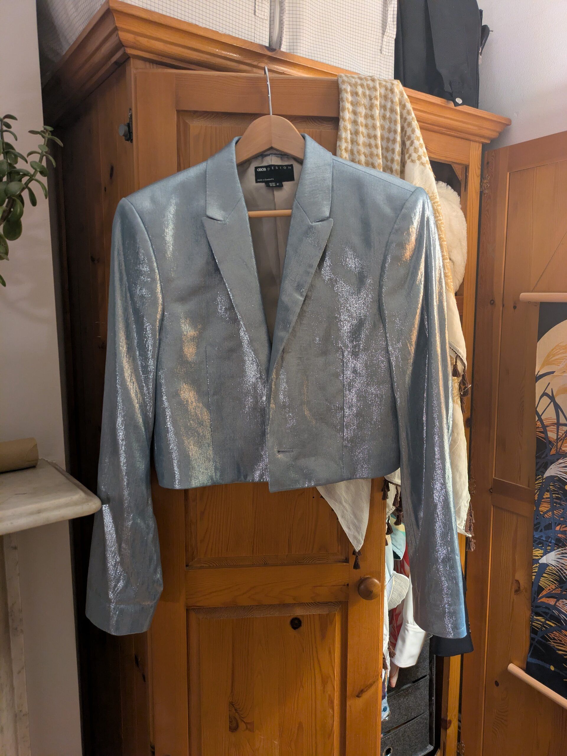 Thanks again for sticking around! As a last little thing, remember that clothing swap I went to last week? I got various things including the plaid shirt I’m wearing in a few of the bereals, a linen shirt for work, a fun colourful shirt, some leather trousers, and finally, the pièce de résistance, a shiny blue blazer!!