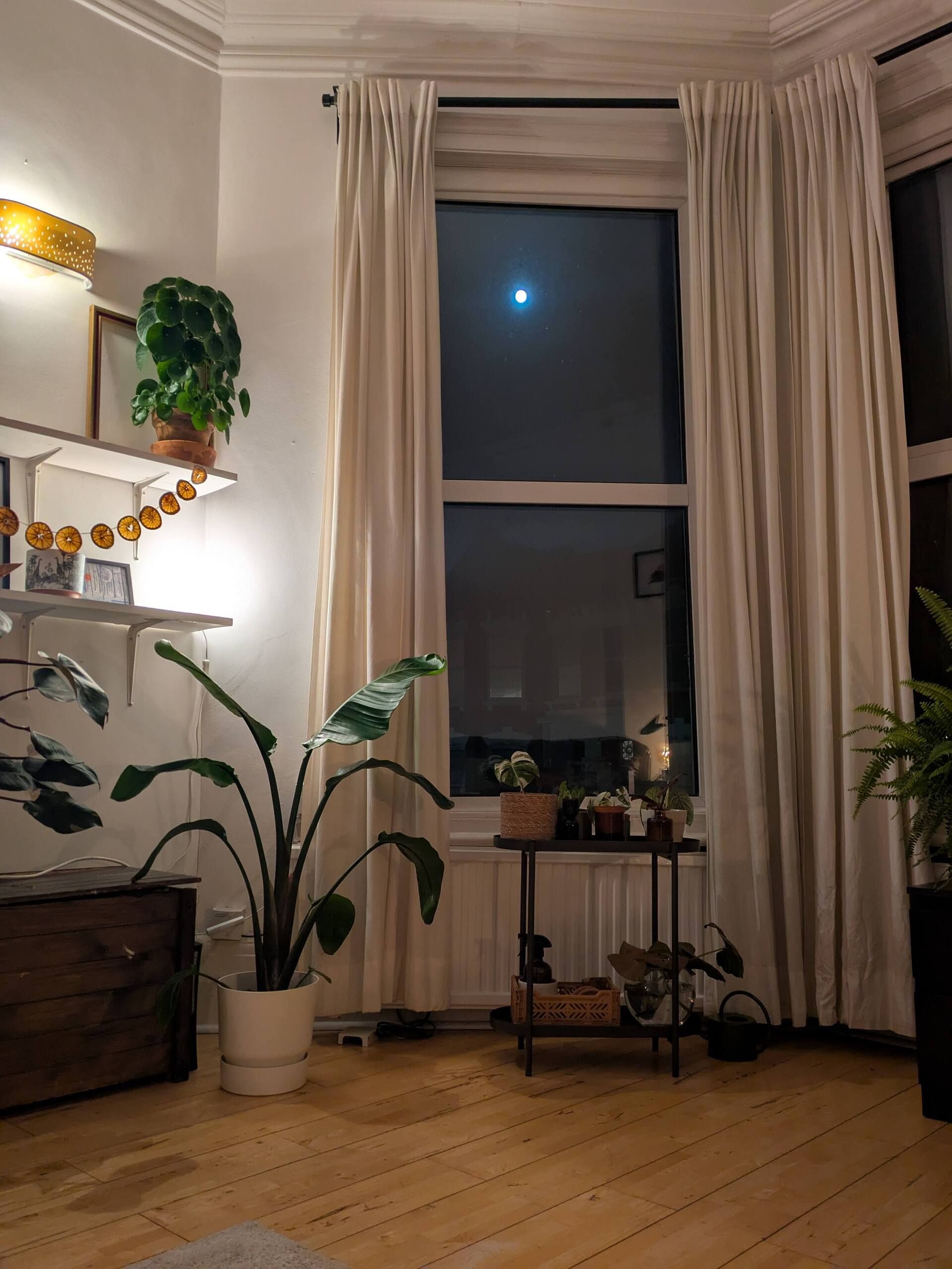 the moon! and the very nice living room in my house, plant collection courtesy of green-fingered Sophie